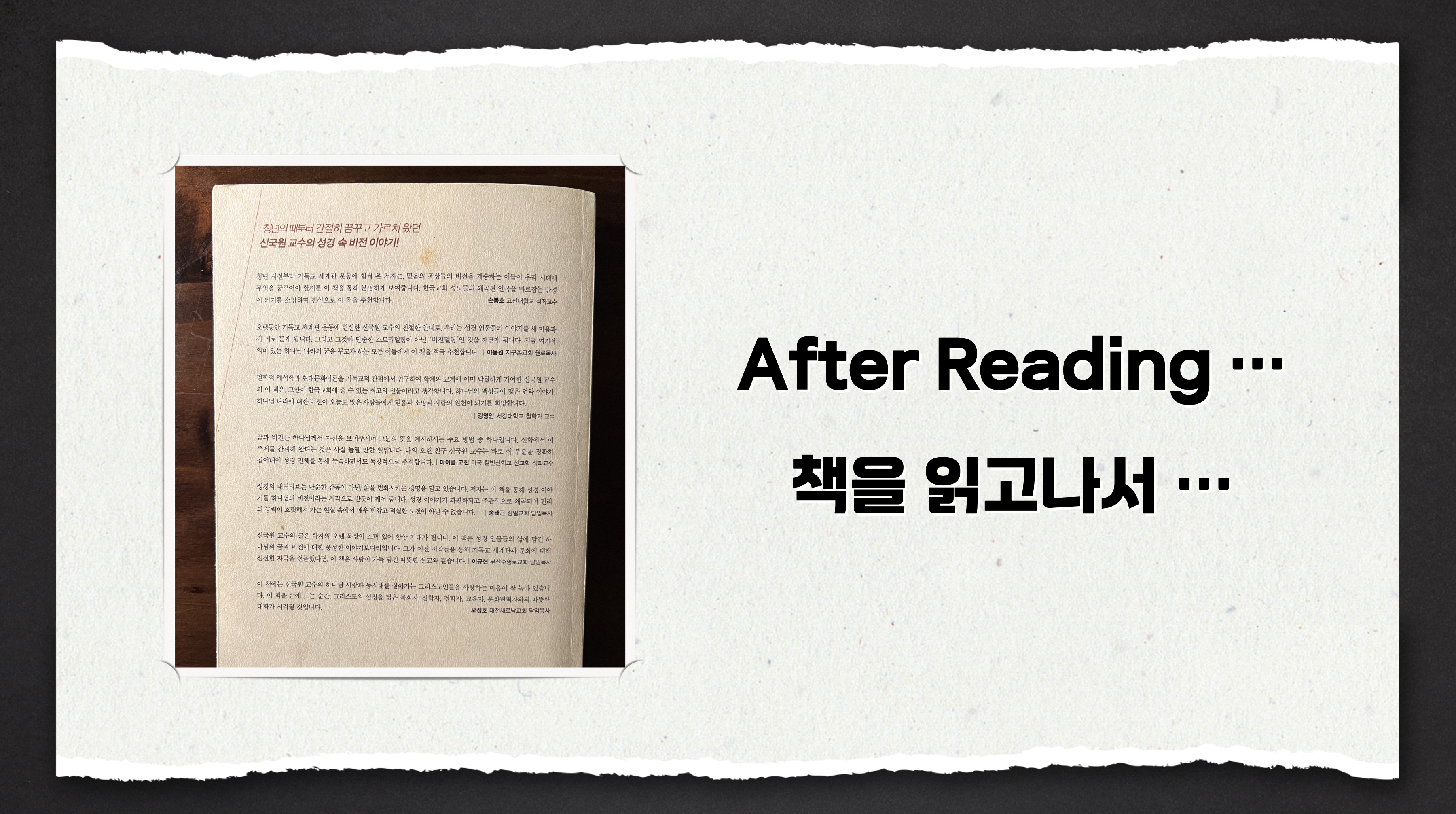 | [Book Review/기독교세계관] 지금 우리는 여기서 무엇을 꿈꾸고 있는가 05. 도망자의 삶을 변화시킨 비전: 모세 (23) | 2024.01.05 |