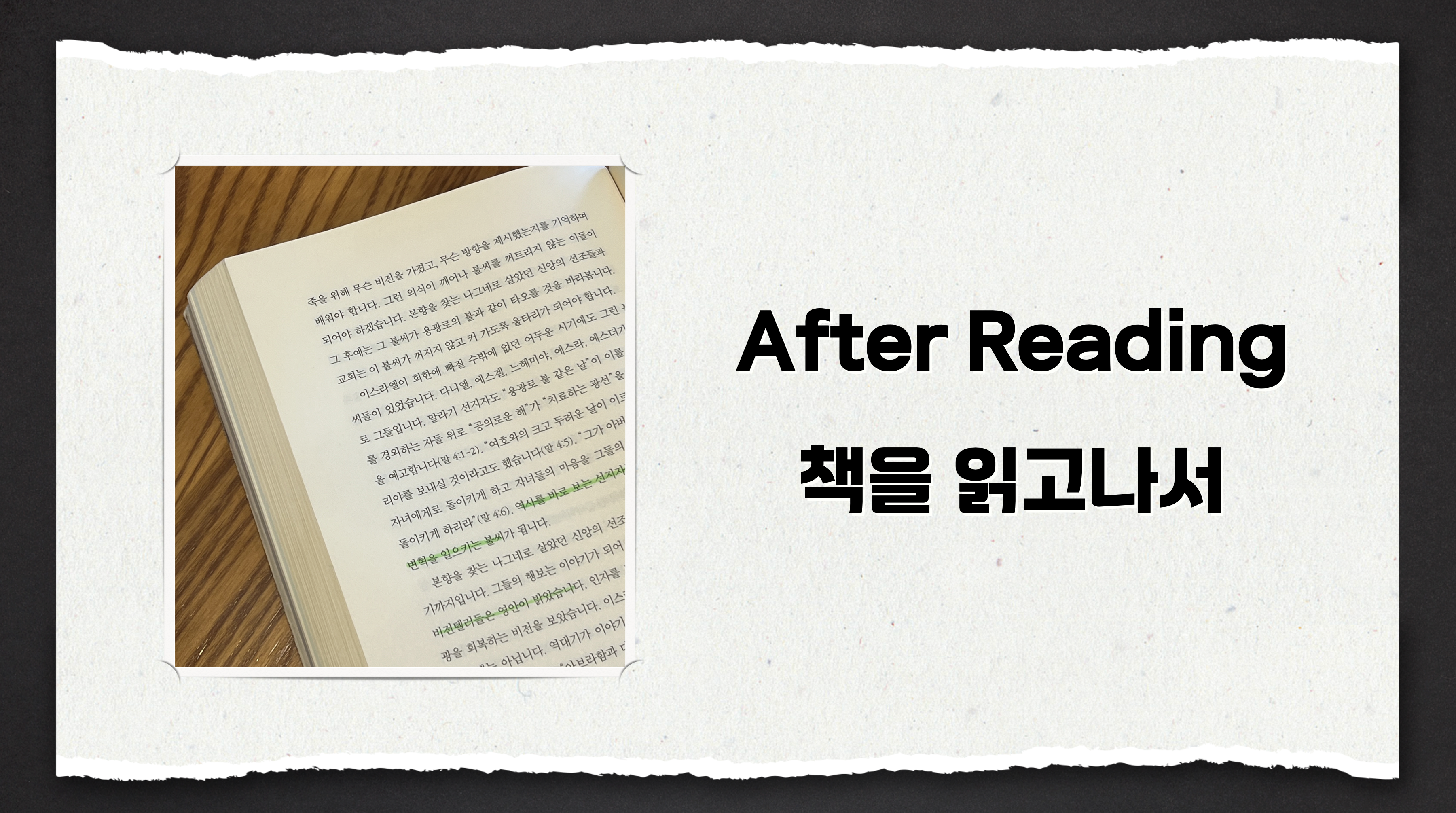 다니엘의 이야기는 어려서부터 재미있는 이야기들이 많이 나오는 성경으로 생각하는 경우가 많았다. 하지만 다니엘의 이야기에는 하나님의 비전을 따라가기 위해서 노력했던 사람의 일대기와 그러한 사람을 하나님께서 어떻게 도우셨는지를 확인할 수 있는 이야기라는 것을 이번 책을 통해서 다시 한번 생각하게 되었다. 또한 그러한 다니엘이 바라보는 세상과 세상의 것을 따라가는 정복자의 눈으로 바라보는 세상이 어떻게 다른 지도 생각해 보게 되는 기회가 되었다.