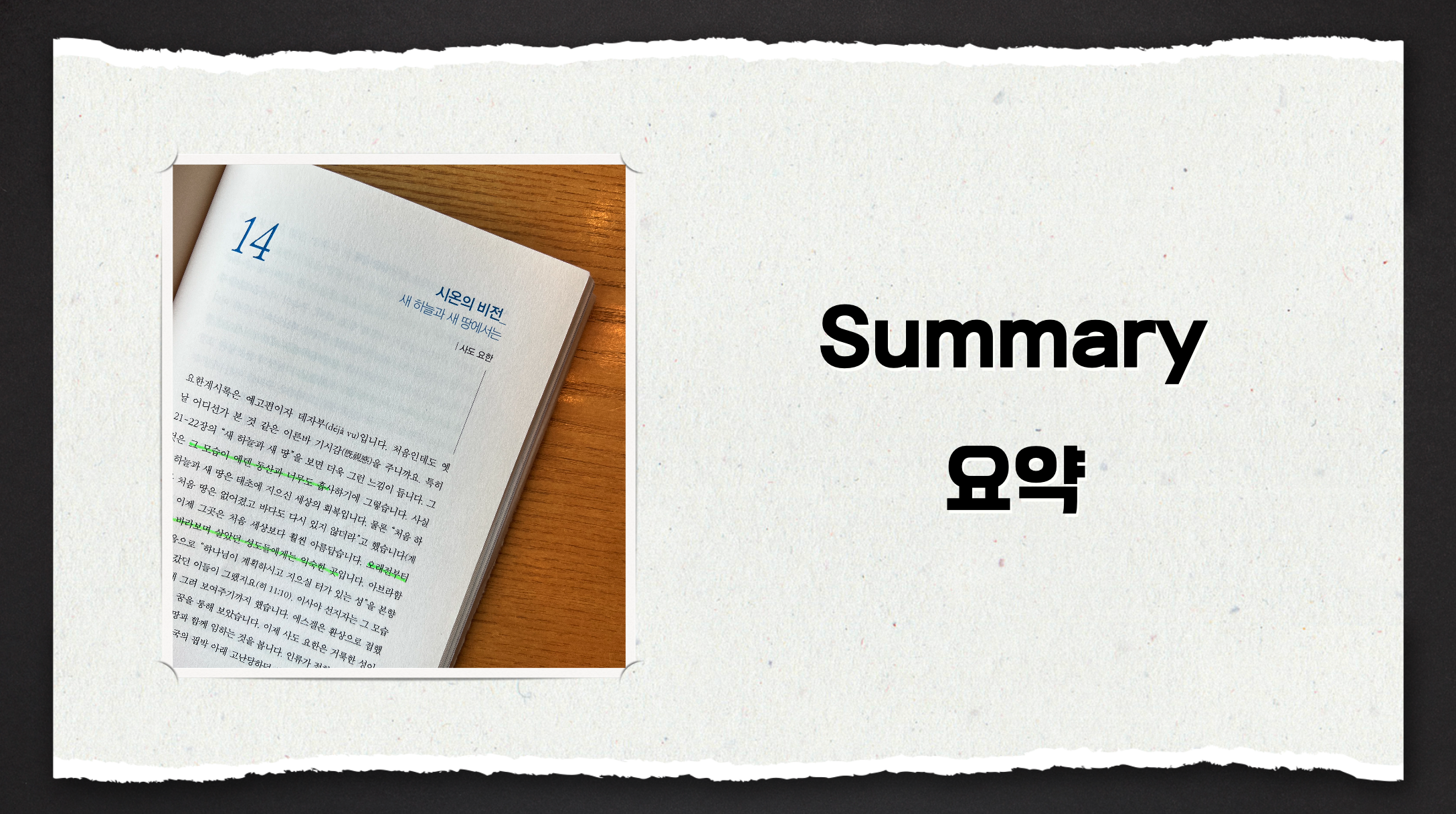 ① 요한계시록에 대한 그동안의 인상 및 생각은 어떠했는지 이야기해 보고, 이번 14장을 읽고 나서 그 생각이 어떻게 변하였는지 이야기해 보자.