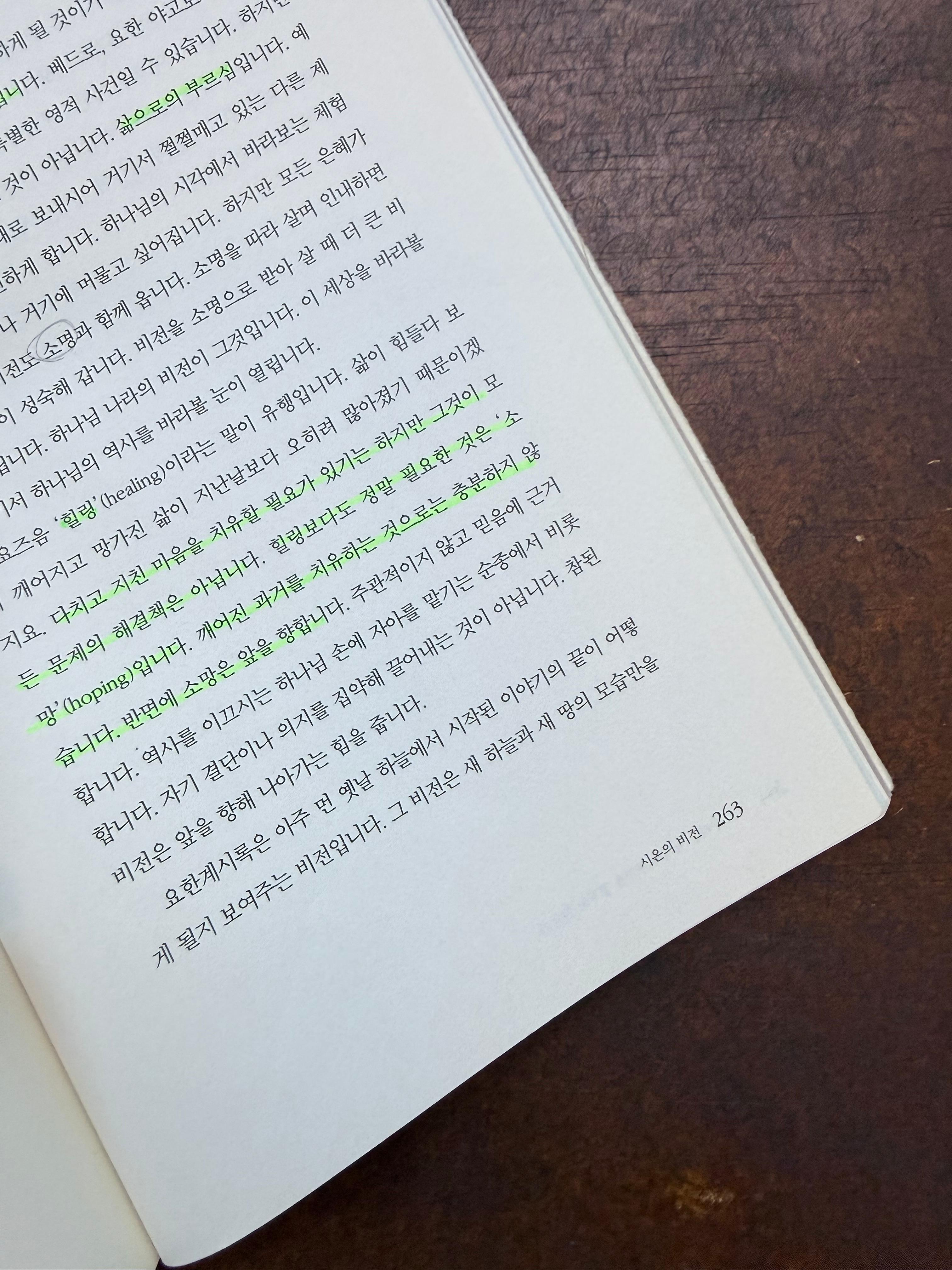 핵심은 분명하다. 하나님의 비전은 인간이 구축하는 것이 아니라 하나님께서 친히 이루어 가신다는 사실이다. 우리는 흔히 세계관을세상적 가치 대신 기독교적 가치로 살아간다정도로 이해한다. 그러나 책은 근본적인 진리를 일깨운다. 기독교 세계관의 주인공은 인간이 아니라 하나님이시다. 우리의 실패와 한계에도 불구하고 하나님은 자신의 계획을 결코 놓치지 않으신다.