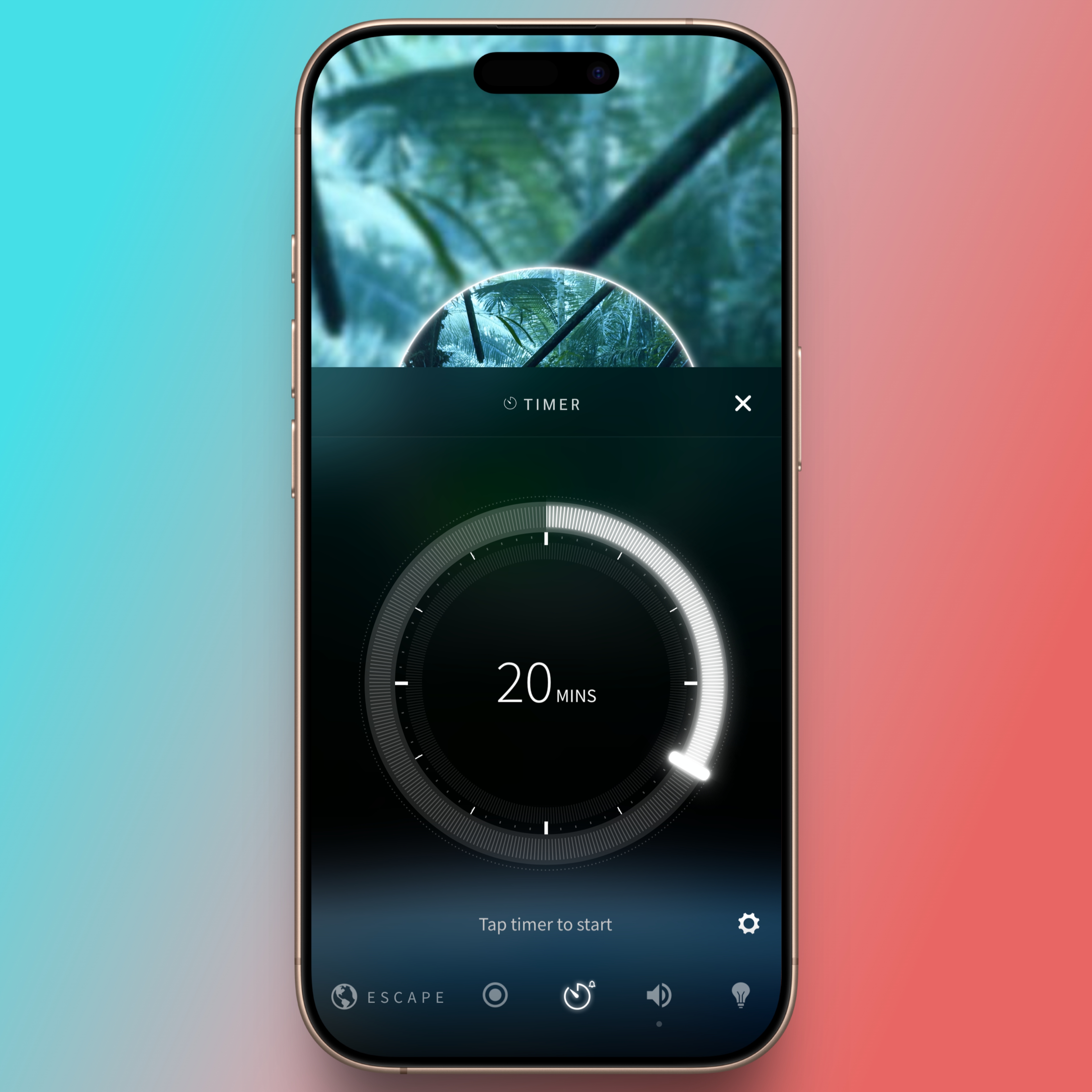 화면의 안내에 따라 숨을 들이마시고 내쉬다 보면, 짧은 시간 안에 몸의 긴장이 완화되는 것을 느낄 수 있다. Escape 카테고리 역시 타이머 기능을 제공하지만, 필자의 경우 Focus나 Sleep에 비해 상대적으로 사용 빈도는 낮은 편이다. 다만 필요할 때 분명한 역할을 해주는 기능이라는 점은 분명하다.