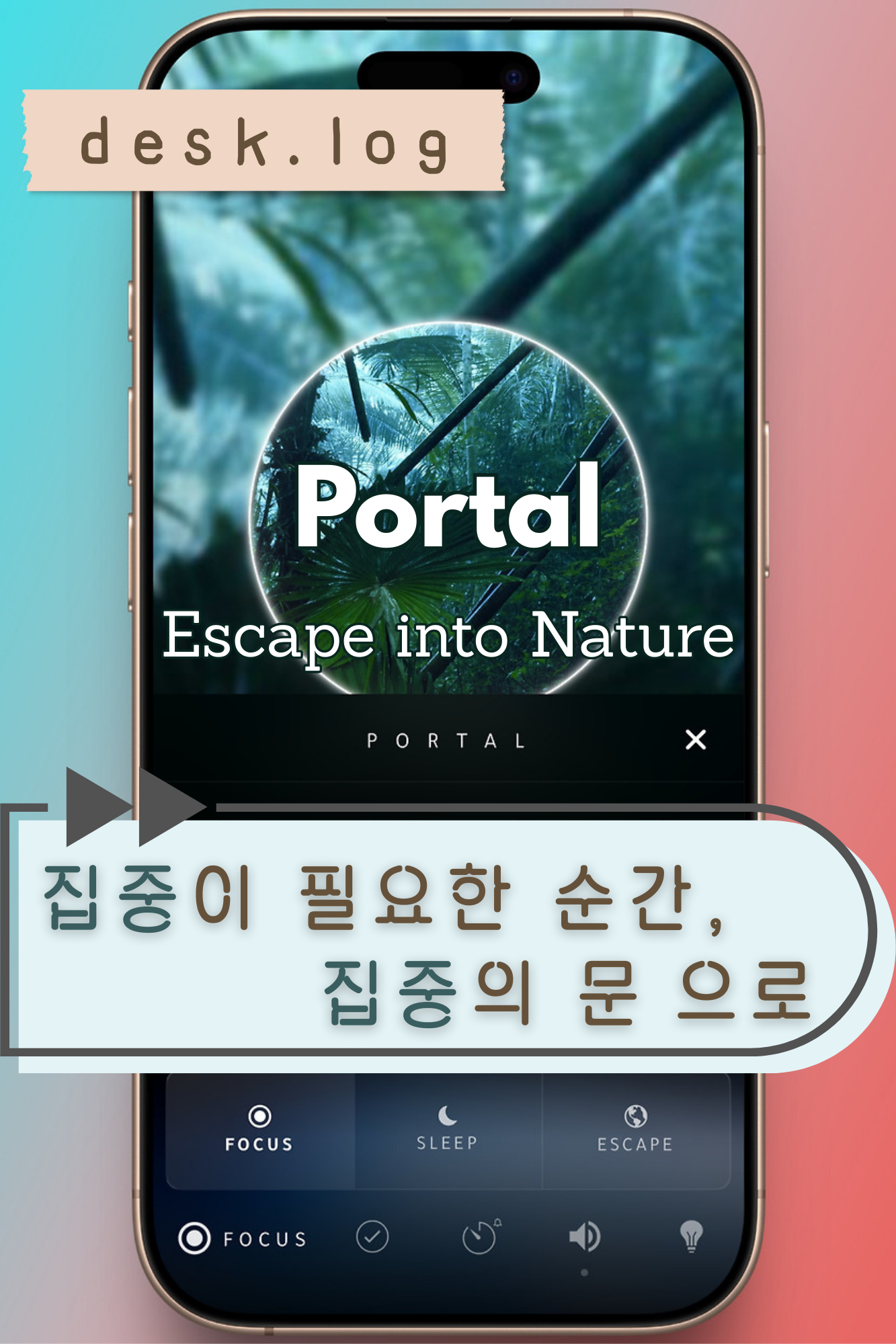 집중이 필요한 순간, 소리와 공간을 새로 열어주는 앱. Portal은 그 이름처럼, 일상에서 잠시 다른 환경으로 들어가 집중할 수 있도록 돕는 조용한 통로가 되어준다. desk.log에 기록해 둘 만한 앱이라는 생각이 드는 이유다.