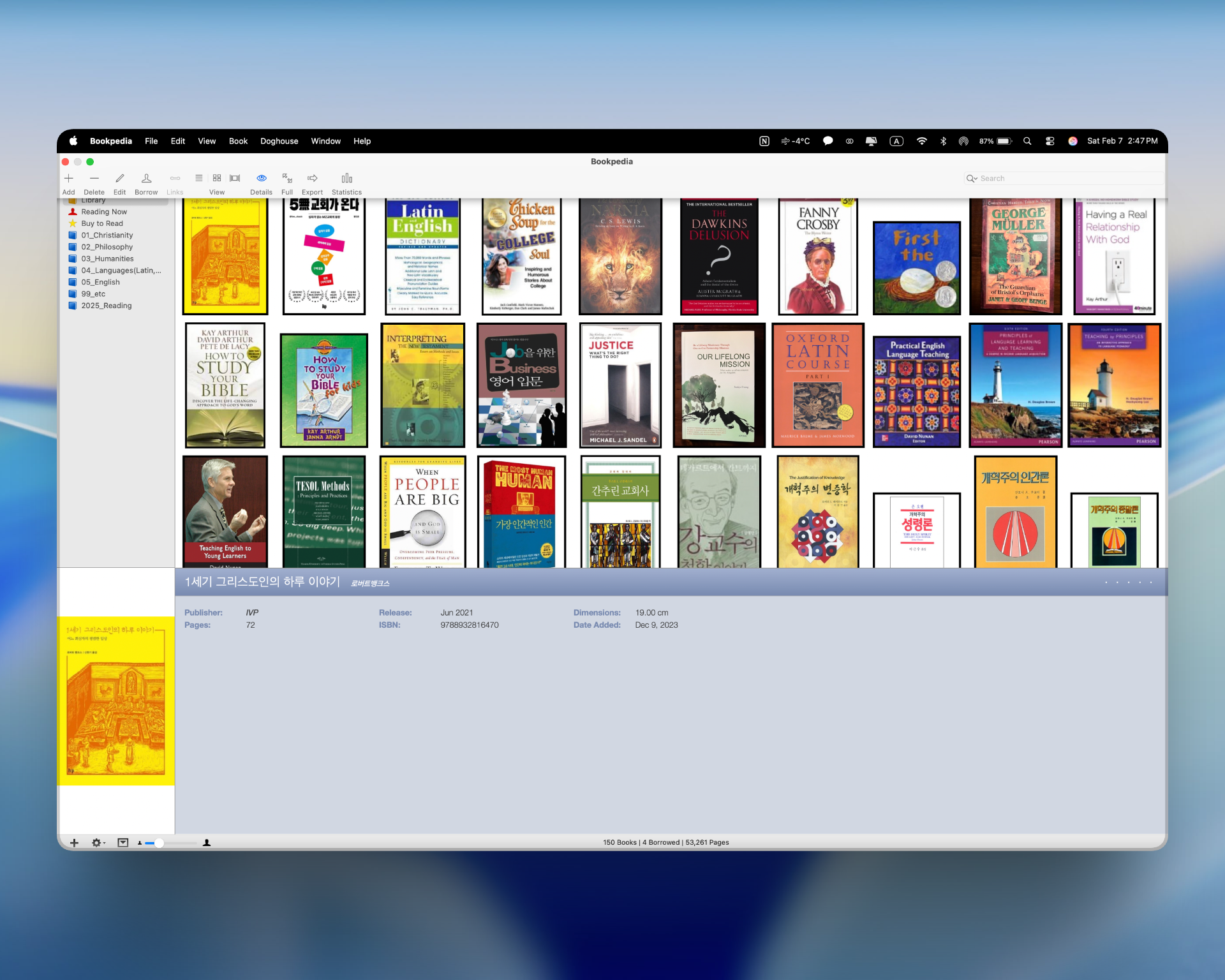 또한 책을 주제나 성격에 따라 분류하고 싶을 경우, 폴더를 만들어 정리할 수도 있다. 필자는 책의 내용과 읽는 목적에 맞추어 폴더를 구성해 두는 편인데, 이렇게 정리해 두면 실제로 책을 찾을 때 훨씬 빠르고 효율적이다.