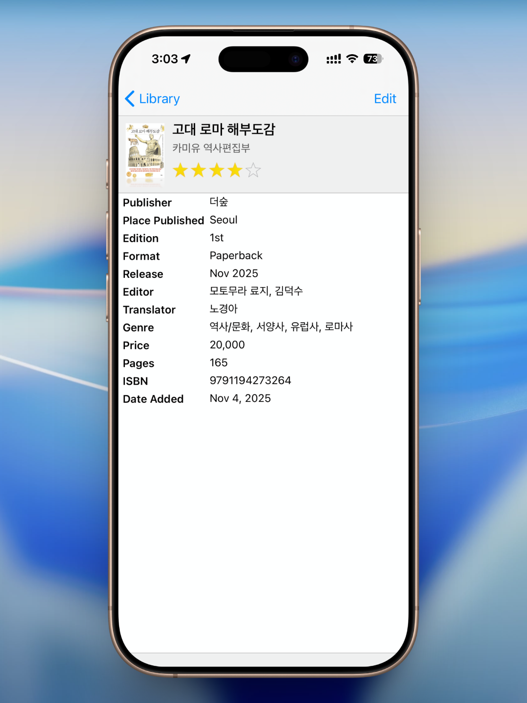 그럼에도 불구하고 필자가 약 10년 가까이 이 앱을 계속 사용해 온 이유는 분명하다. 실제 사용 과정에서 아쉬운 점들이 결정적인 불편으로 이어지지 않았기 때문이다. 한때 수백 권의 책을 소장하던 시기에는 중복 구매를 하거나 필요한 책을 찾지 못해 시간을 허비하는 경우도 많았다. 하지만 ‘Bookpedia’를 사용한 이후로는 이러한 문제들이 상당 부분 해소되었다.