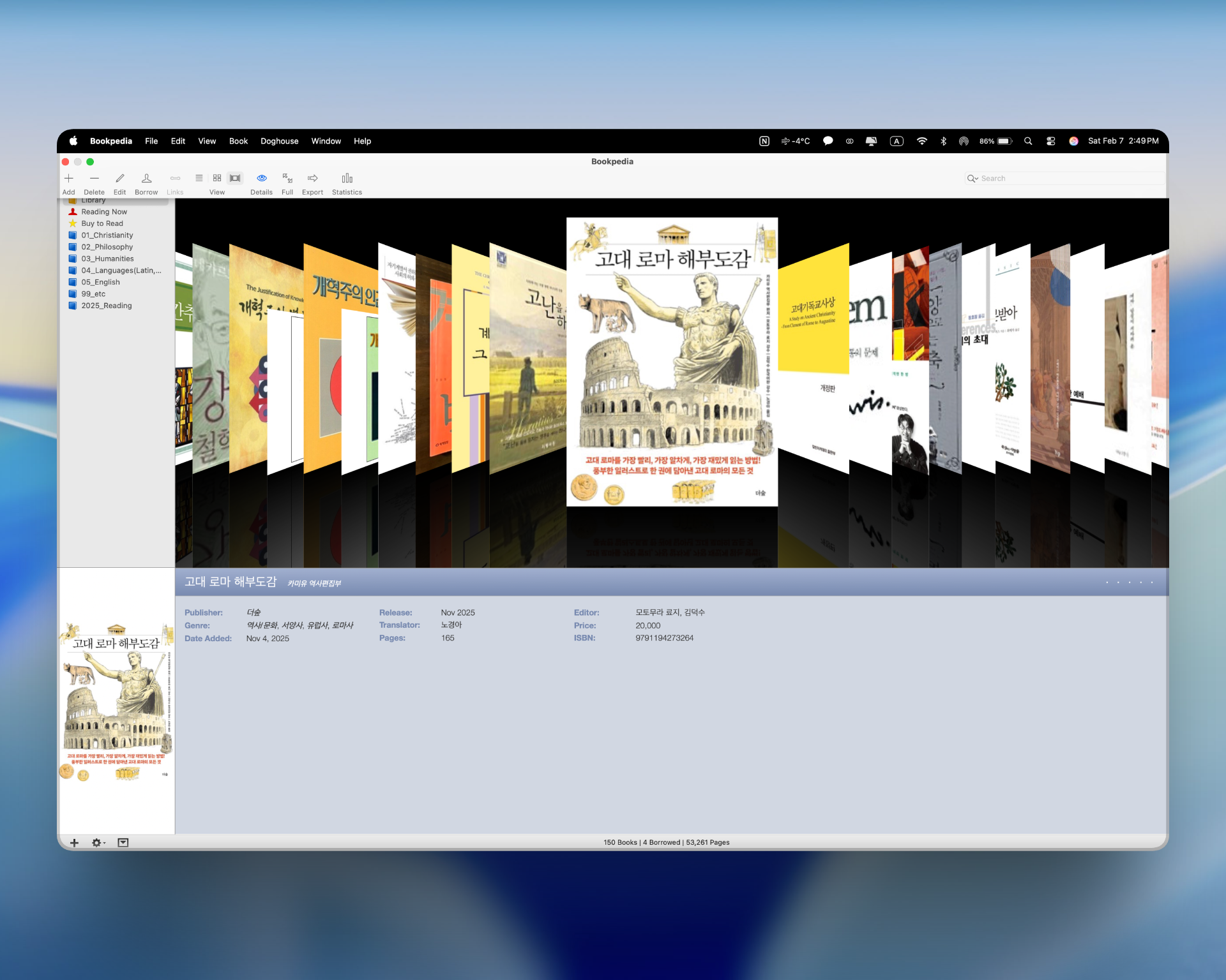 현실에서 책을 체계적으로 관리하기 위해 책장이 필요하듯, 디지털 환경에서도 책을 관리하는 도구는 중요하다. 내가 어떤 책을 소장하고 있는지, 책에 대해 어떤 평가를 남겼는지, 혹은 간단한 메모라도 정리해 두었는지에 따라 책 관리의 편의성은 크게 달라진다. 이러한 필요 속에서 필자가 거의 10년 가까이 사용해 오고 있는 앱이 있다. 맥 전용 도서 관리 앱, ‘Bookpedia’이다.