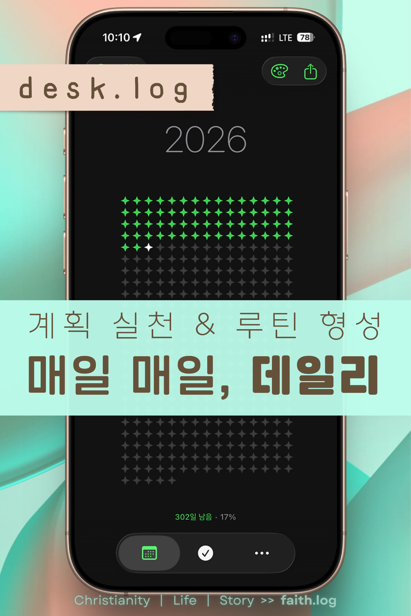 오늘 desk.log에서 소개할 앱은 '데일리'다. 이름만큼이나 일상과 밀착된 앱으로, 특히 시간을 허투루 쓰지 않겠다는 마음을 가진 사람들에게 잘 맞는다. 핵심은 단순하다. 내가 어느 지점에 서 있는지를 한눈에 보여주는 것. 이 앱은 그 하나의 역할을 꽤 충실하게 해낸다.