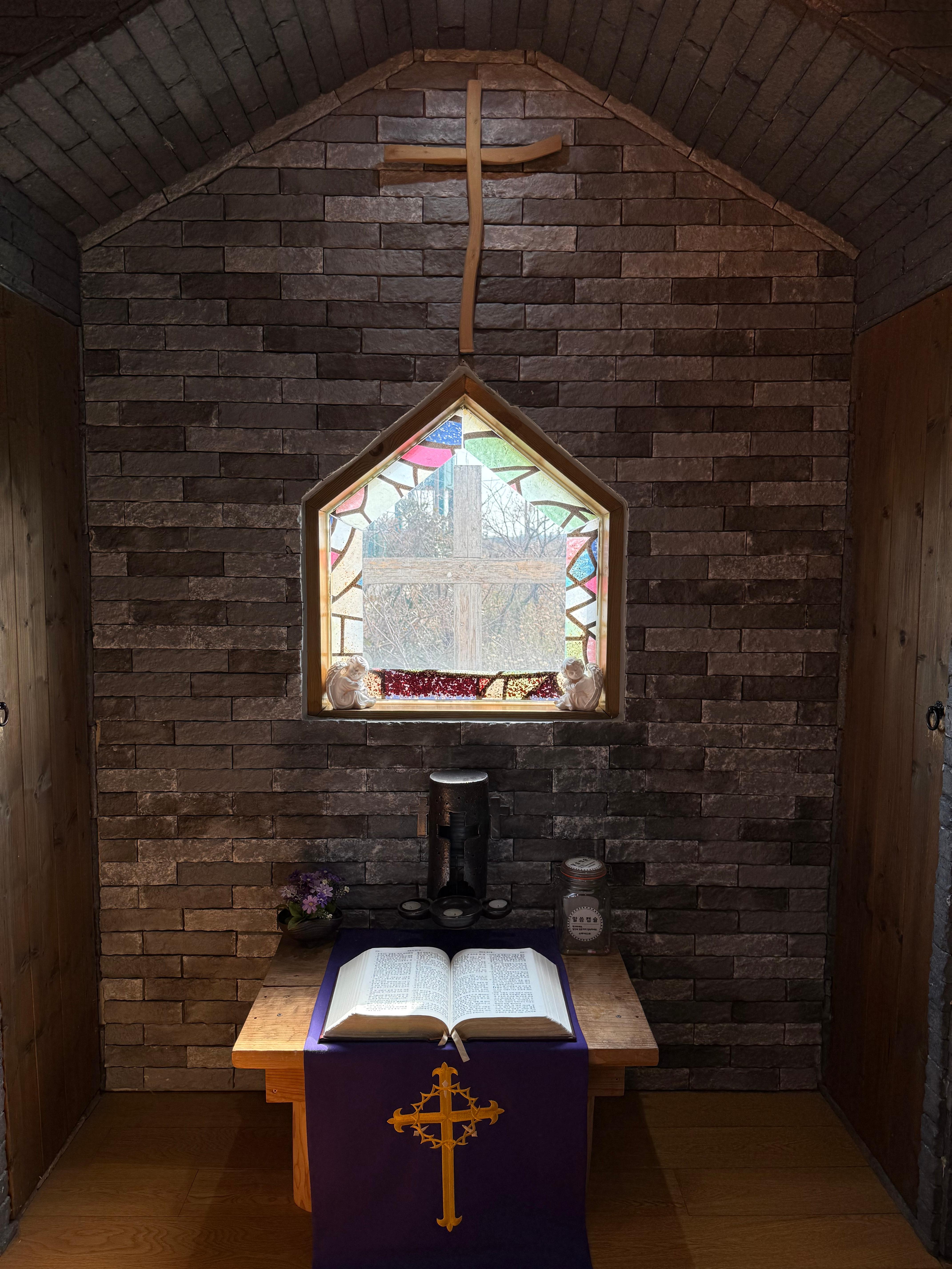 가장 인상 깊었던 것은, 교회 내부에서 바깥의 나무 십자가가 그대로 보인다는 점이다. 특히 내부의 불을 끄면 외부에 세워진 십자가가 더욱 또렷하게 눈에 들어오는데, 이를 통해 세상의 화려함과 분주함을 내려놓을 때 비로소 주님을 더 온전히 바라볼 수 있다는 것을 몸소 느낄 수 있었다.