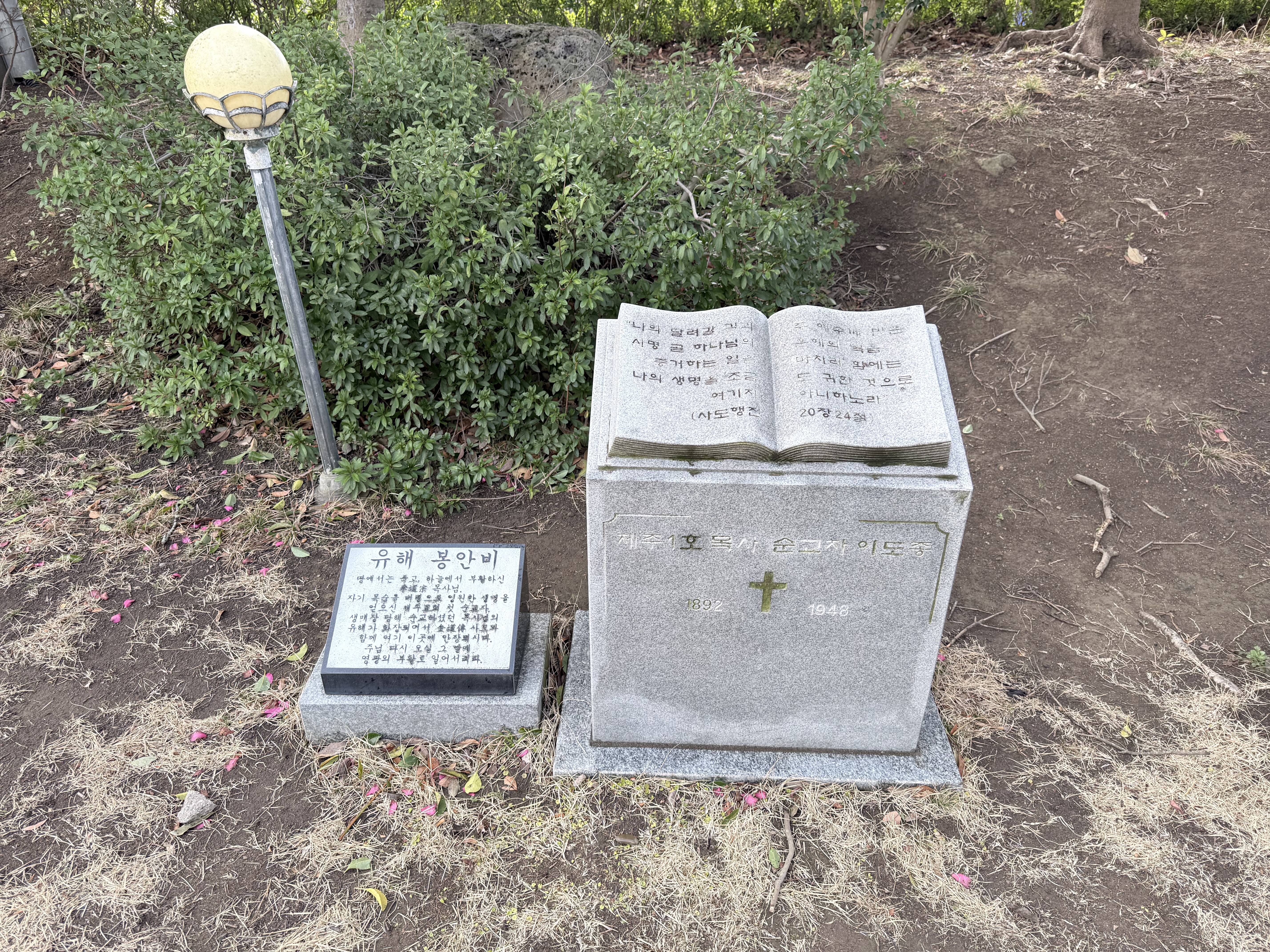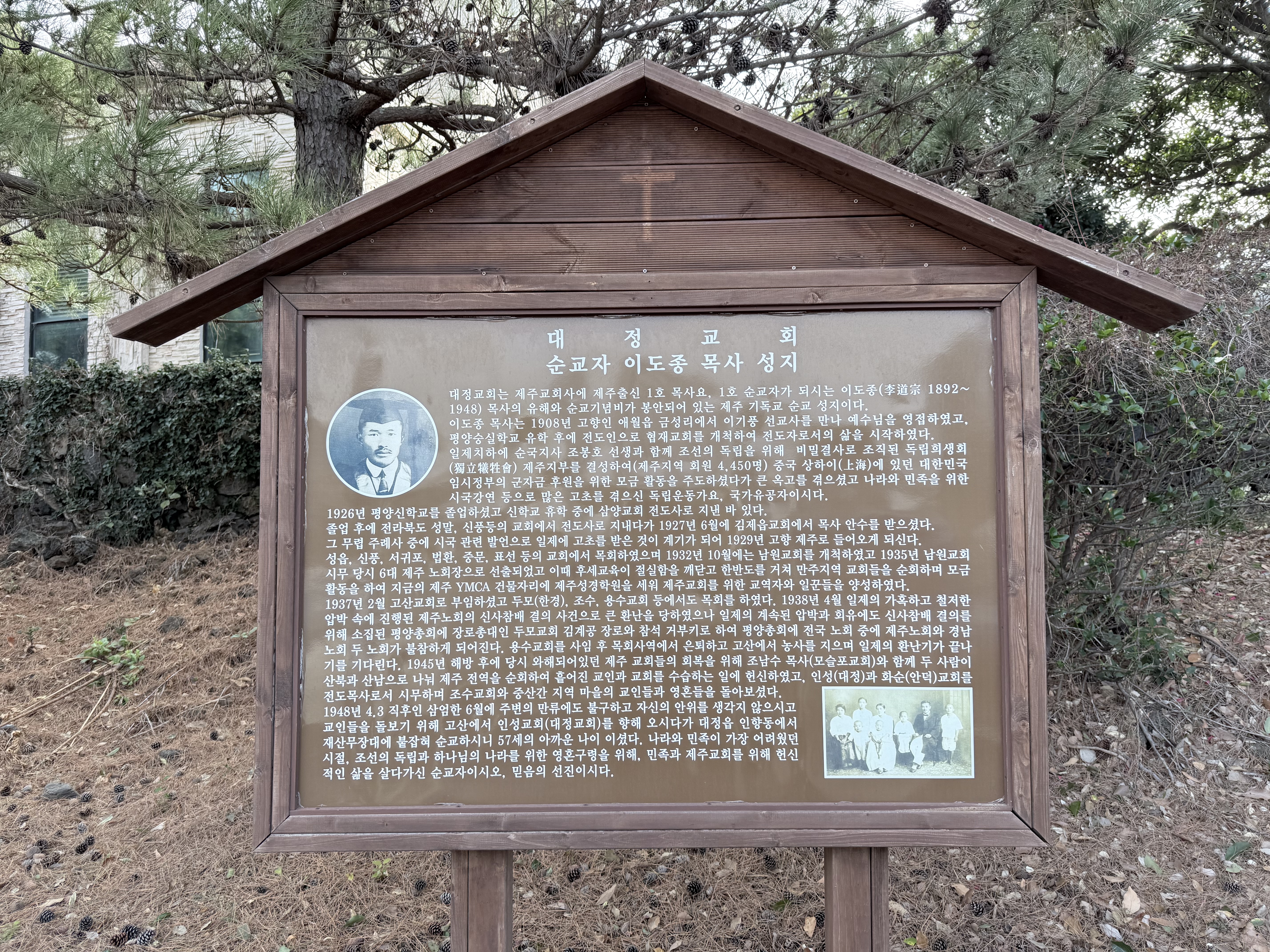 교회 앞마당에 들어서면 이도종 목사 기념비와 유해 봉안비를 마주하게 된다. 그 중 특히 눈길을 사로잡는 것은 산방산 돌로 새긴 순교 기념비다. 대정장로교회 교인들이 이도종 목사의 헌신적인 사랑과 희생, 그리고 그가 마지막에 흘린 피의 값을 결코 잊지 말자는 마음으로 세운 것이라고 한다. 제주의 돌이 대부분 구멍 뚫린 현무암이기에 산방산까지 직접 가서 구멍 없는 돌을 캐고 날라 글을 새겨 세웠다는 이야기가 전해진다. 이 기념비 앞에 서면, 오늘을 살아가는 신앙인으로서 내 믿음이 과연 무엇을 향해 있는지를 묻지 않을 수 없다.