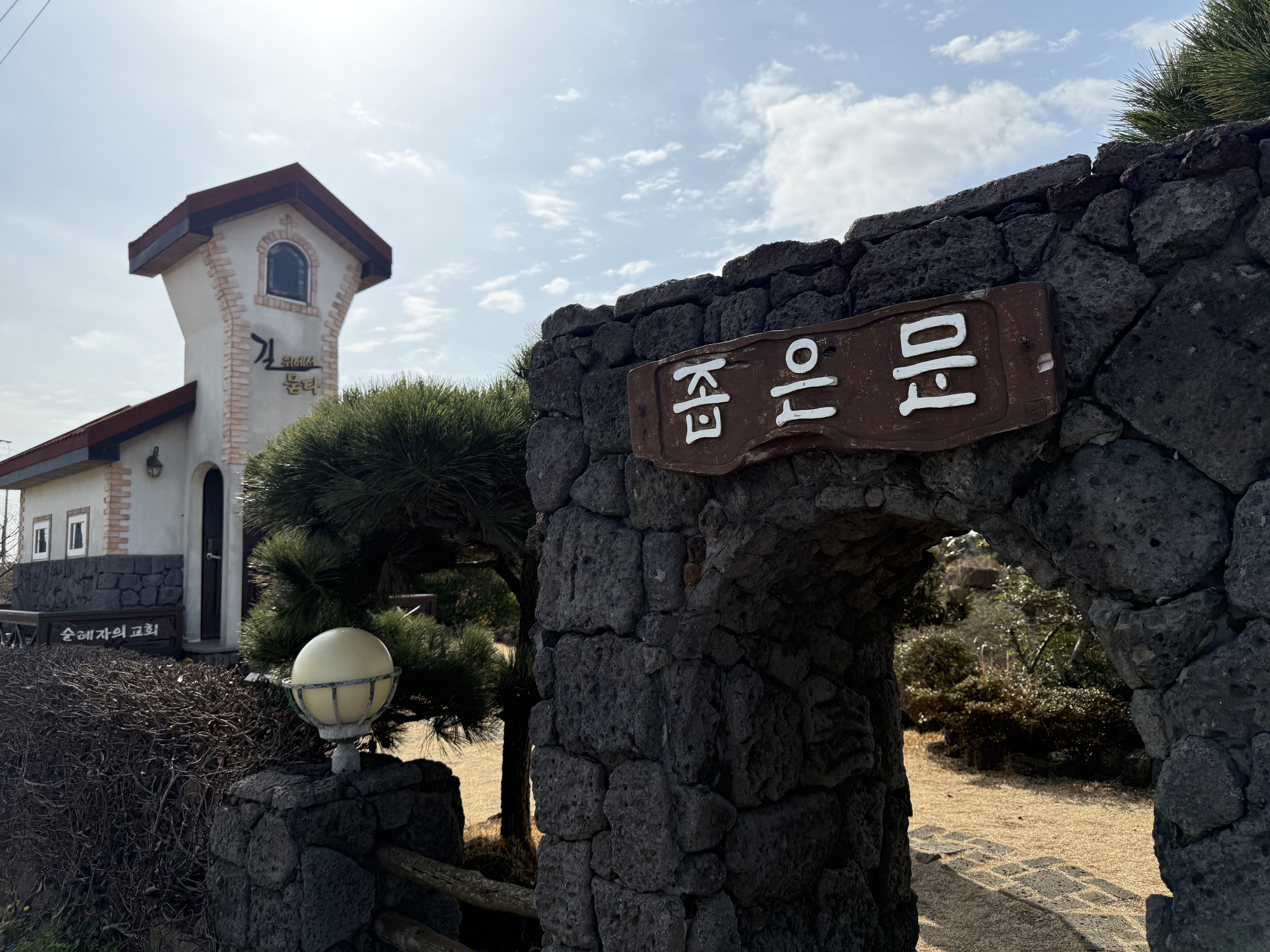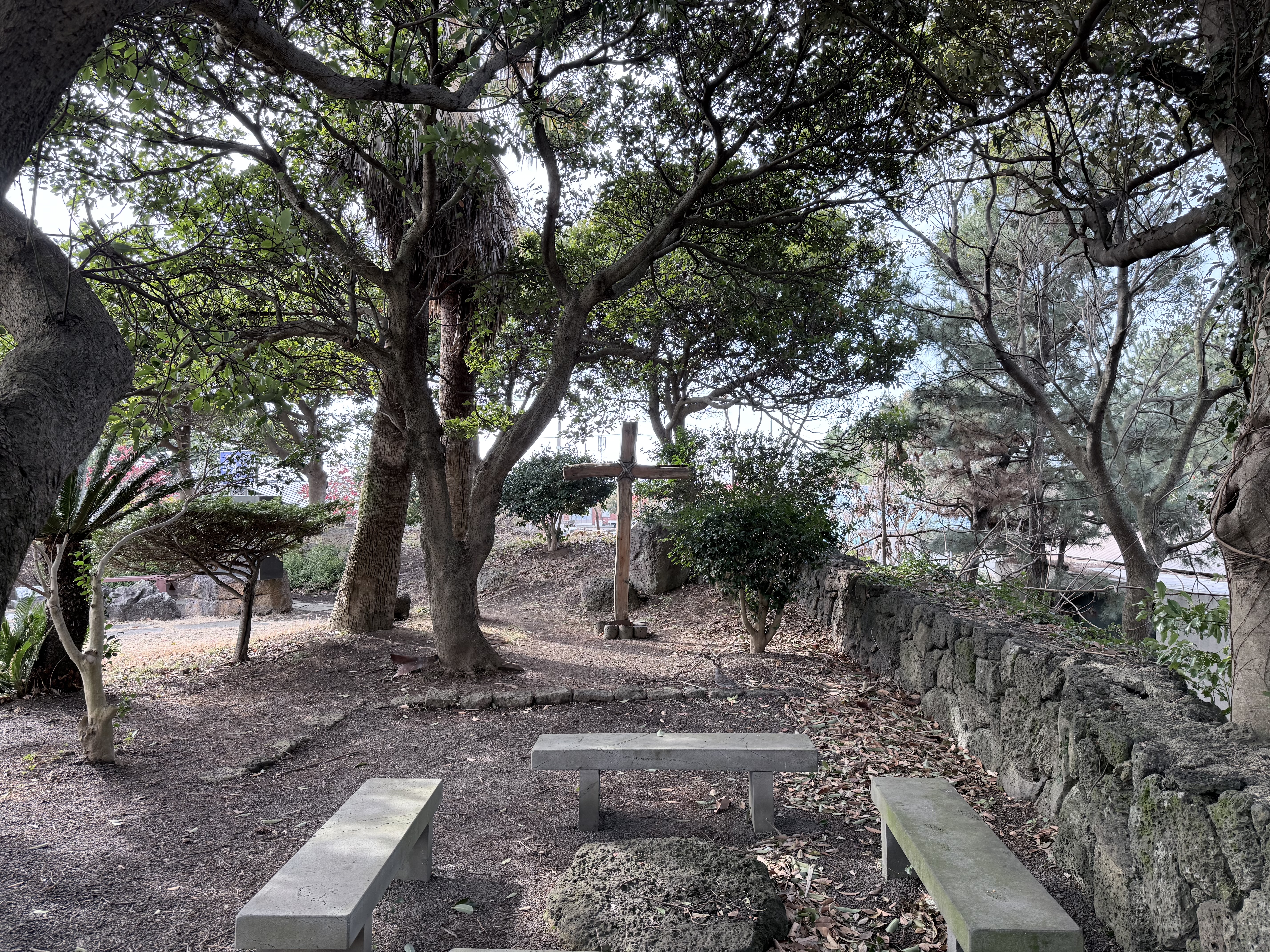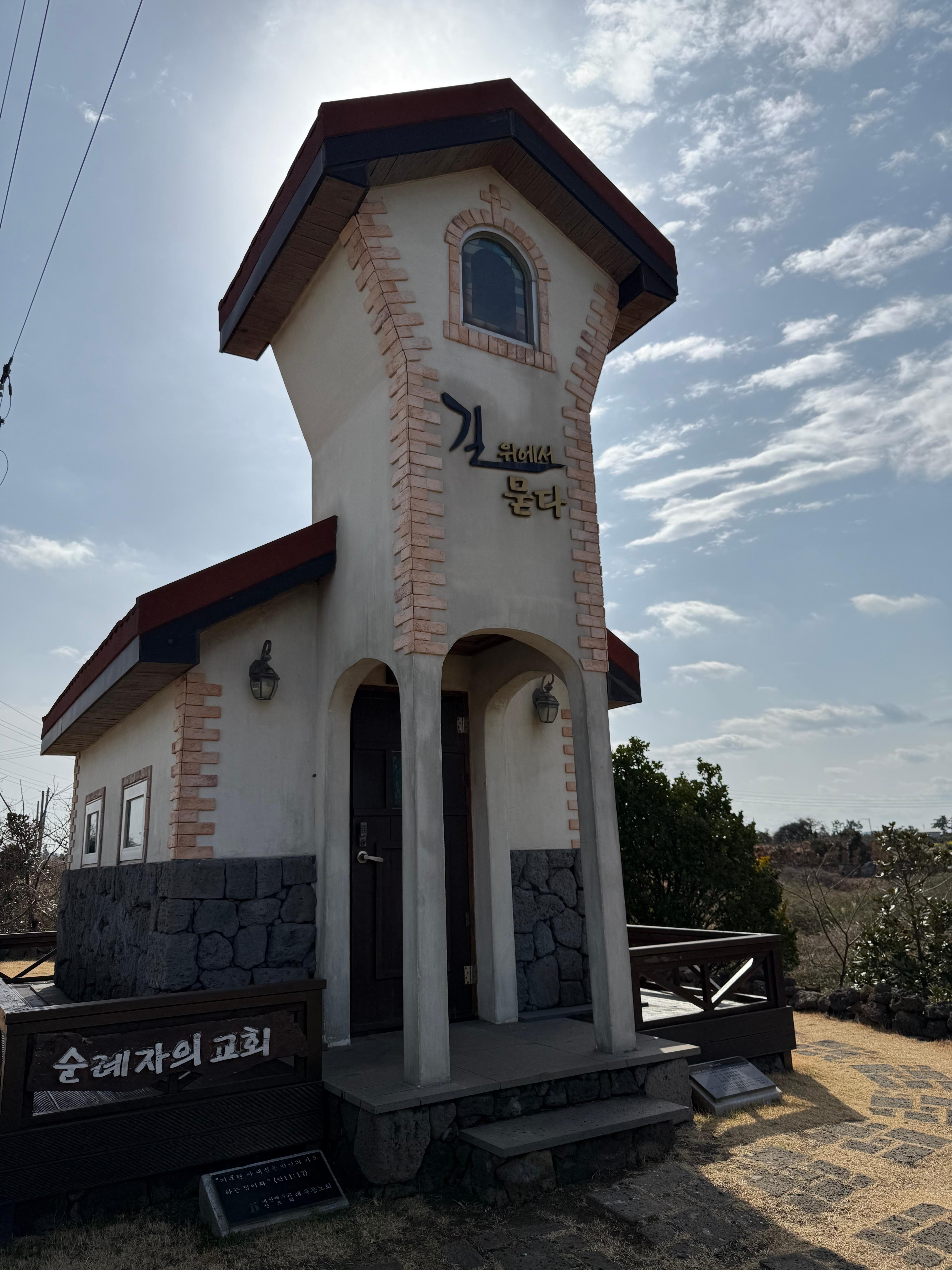 For those arriving by car, a practical note: the nearby Jeju Chusa Museum — dedicated to Kim Jeong-hui, the celebrated Joseon-era scholar and calligrapher — shares its parking lot with the church. Follow the stone steps beside the restroom building in the museum's lot, and you'll find yourself at Daejeong Presbyterian Church without any trouble.