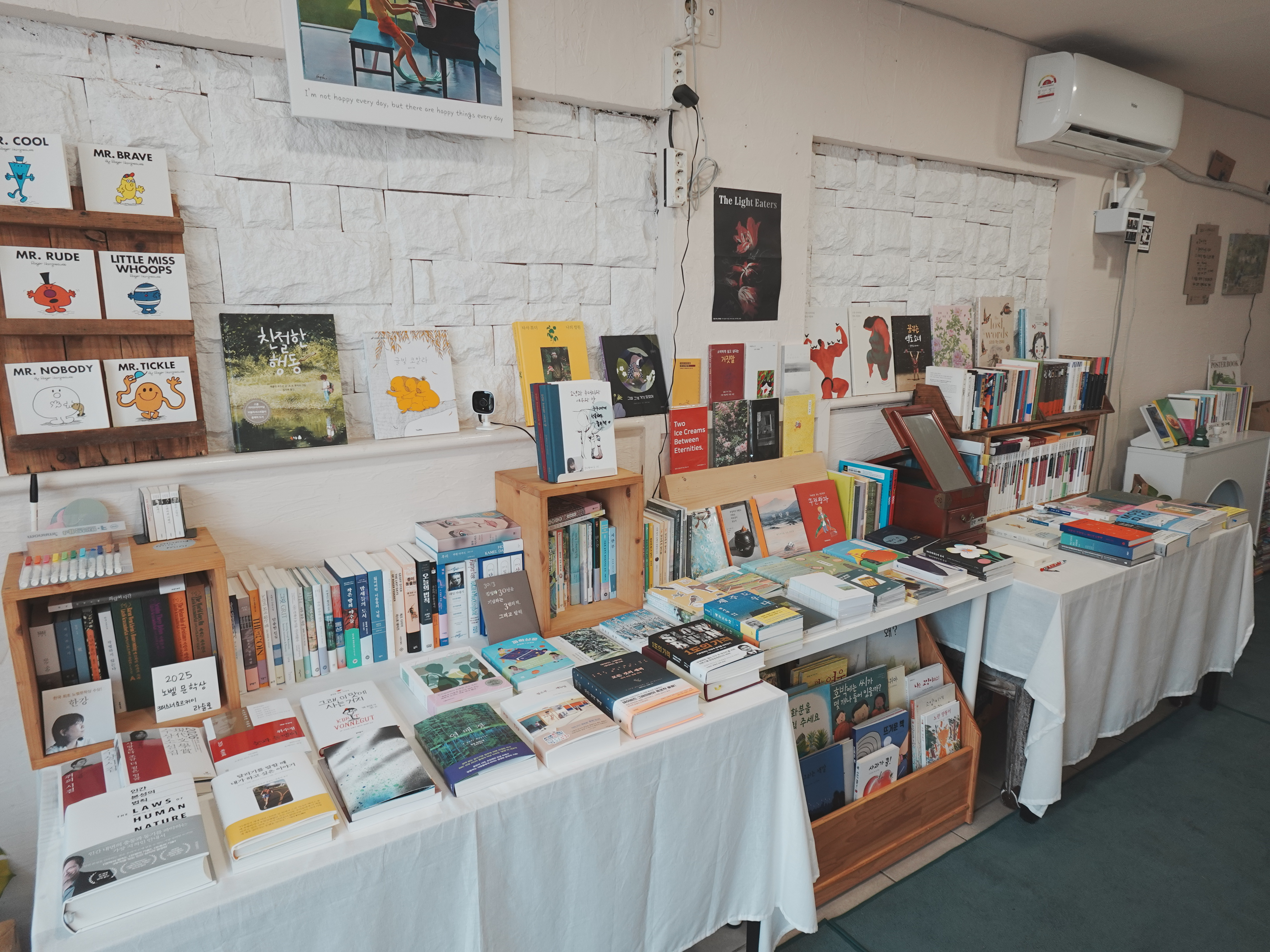 책방 안으로 들어서면 소박하면서도 아늑한 분위기가 맞이한다. 독립서점답게 책방지기가 큐레이션한 다양한 책들을 만날 수 있는데, 특히 이 서점은 그런 특성이 더욱 강하게 느껴져 책방지기에게 직접 책을 소개받는 듯한 기분을 준다.