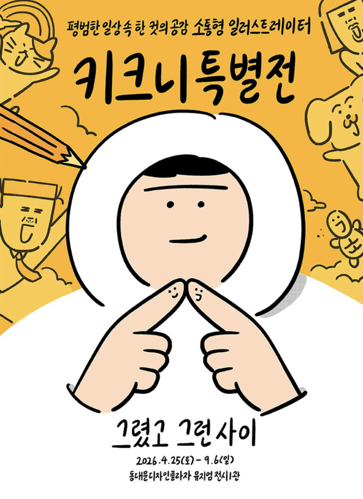 우리는 엽서 한 장의 손글씨가 누군가의 하루를 바꾸기도 한다는 그 사실을 종종 잊는다. 키크니의 만화는 그것을 부드럽게 다시 일깨운다. 빵 터지는 한 컷과 마음이 오래 남는 한 컷 사이에서, 그가 쌓아온 무수한 '사이들'이 지금 한자리에 모여 있다.